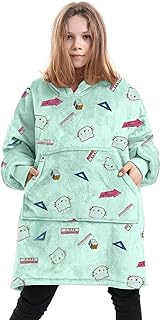 Übergroße tragbare Decke, Familien passende Outfits Flanell weicher Sweatshirt Hoodie mit großer Fronttasche für Erwachsene und Kinder - Einheitsgröße