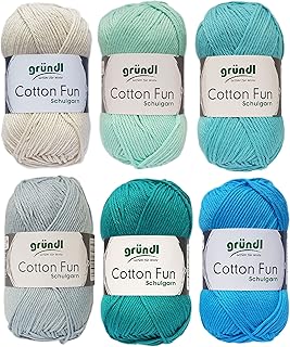 Gründl Cotton Fun Häkelgarn Schulgarn 100% Baumwolle SET 6 Blau Mix 6 Stück 300 Gramm