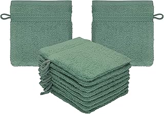 Betz 10 Stück Waschhandschuhe Set Waschlappen Waschhandschuh Frottee Größe 16x21 cm Kordelaufhänger 100% Baumwolle Premium (tannengrün)