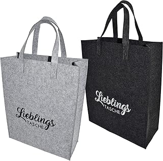 CREOFANT 2er Set Filztasche Einkaufstasche · Stofftasche Einkaufen · Shopping Bag Lieblingstasche · Shopper · Beutel aus Filz · Schultertasche (2er Set: Dunkelgrau und Hellgrau)