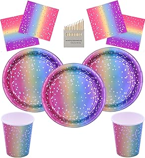 Offershop Rainbow Party Supplies Rainbow Ombre Partygeschirr für Geburtstagsdekoration, 8 Stück