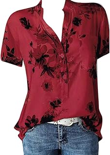 T-Shirts Damen, Freizeit Groß Größe Blumig Drucken V-Ausschnitt Kurzarm Shirt Top Weste Teenager MäDchen Lose Shirt Mode Tops T Shirt Damen Hemd Pulli Elegant Shirts Bluse Oberteil Mit Tasche