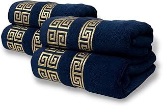 HOMEALOO 4-TLG. Handtuch-Set Premium 100% Baumwolle Handtücher Set Frottierset (4TLG. - 4 Handtücher, Blau Gold)