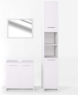 Vicco Badmöbel Set Kiko Weiß - Badspiegel + Unterschrank + Bad Hochschrank + Bad Midischrank