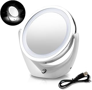 Auxmir Kosmetikspiegel LED Beleuchtet mit 1-/ 10X Vergrößerung, Schminkspiegel mit Blendfreier Beleuchtung, Doppelseitiger Tischspiegel 360° Schwenkbar für Schminken, Rasieren und Gesichtspflege, Weiß
