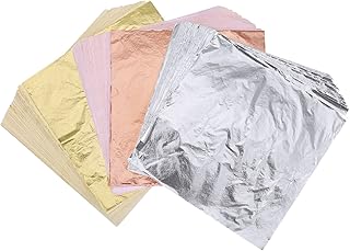 Aweisile Blattgold zum Basteln 300 Blätter Blattgold Blattkupfer Blattsilber Goldpapier zum Basteln Blattkupfer für Vergoldung Kunst Handwerk Möbel Dekoration 14 x 14 cm (Gold, Silber, Roségold)