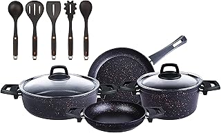 Karaca Biogranit Blackgold 11-teiliges, Non-Toxic, Kochgeschirr-Set, Kochgeschirr-Set, Antihaftbeschichtung, Topf Pfannenset mit Glasdeckeln, Spulmaschinengeeignet, Granit Kochgeschirr-Set
