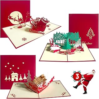 Bluelves 3D Weihnachtskarten mit Umschlag, Weihnachtskarte mit Aufkleber, Pop Up Karte Weihnachten, Weihnachtskarten 3D, Weihnachten Pop Up Grußkarte Set, für Kinder Familie Freunde, 3 Stück