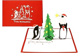 3D Weihnachtskarte „Pinguine & Tannenbaum“ - lustige Pop-Up Karte zu Weihnachten als Weihnachtskarte, Geschenkverpackung & Geschenkgutschein